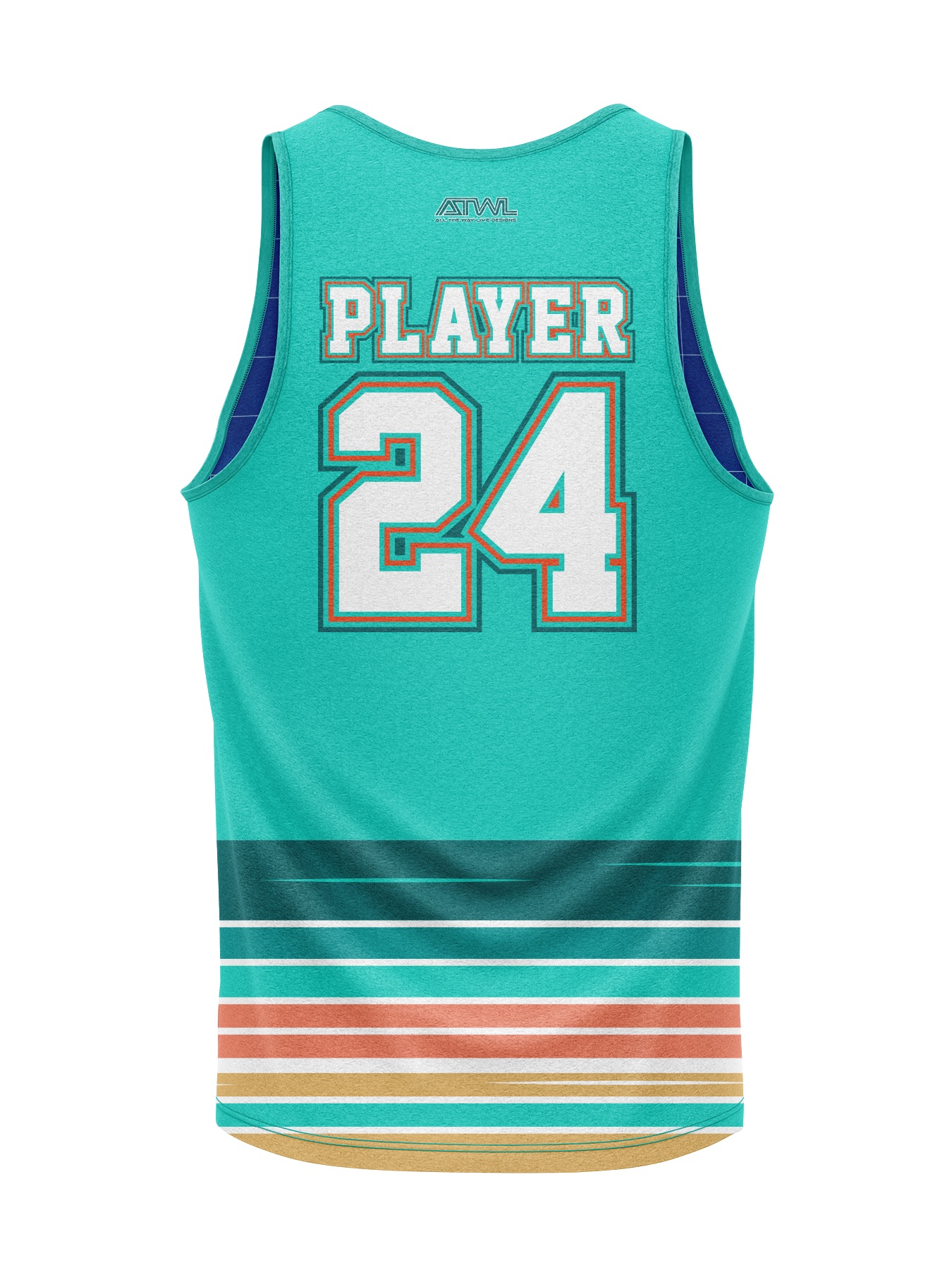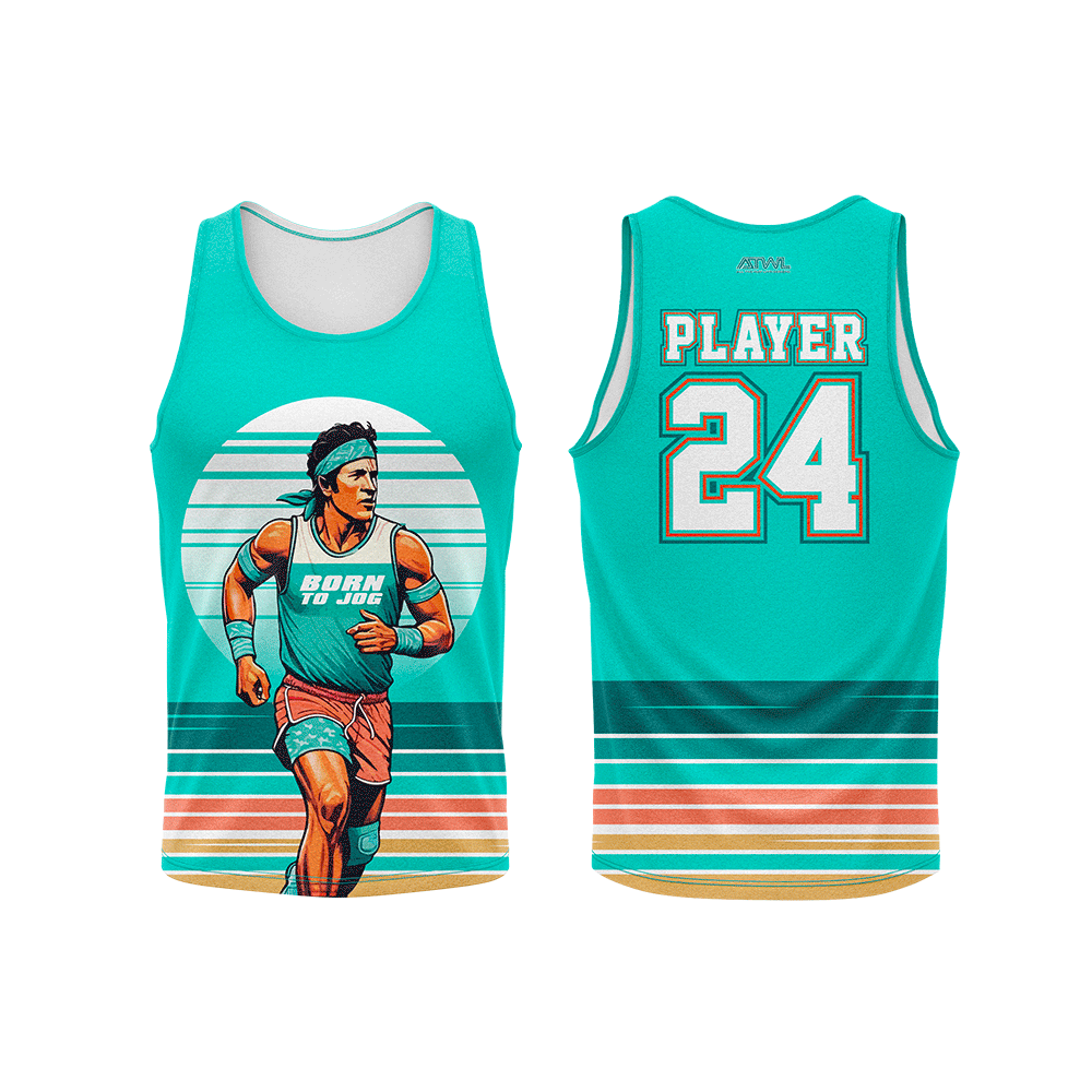 Designed for the New Jersey based, Bruce Springsteen-loving ultimate frisbee team, Born to Jog. This collection’s concept involved the creation of two designs–a strikingly vibrant jersey adorning their team’s idol as well as an official game jersey, a match to the one Bruce is wearing, with slight modifications to satisfy the leagues color regulations.